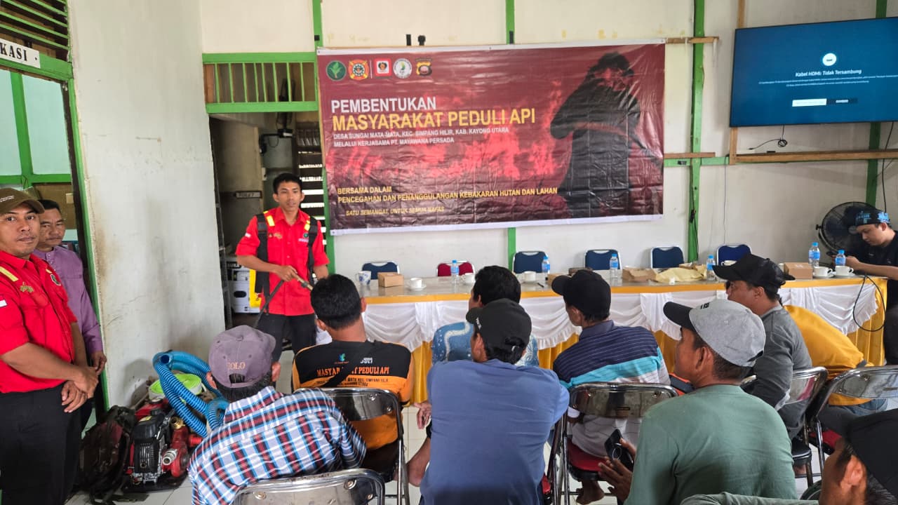 Kayong Utara – Untuk mengantisipasi dan mencegah terjadinya Kebakaran Hutan dan Lahan (Karhutla), PT Mayawana Persada memberi pelatihan relawan Masyarakat Peduli Api (MPA). Para relawan yang berjumlah 10 orang tersebut berasal dari Desa Sungai Mata-mata, Kacematan Simpang Hilir, Kayong Utara. Kegiatan disaksikan Kepala Desa Sungai Mata-Mata, Camat Simpang Hilir, KPH Kayong, Danramil Simpang Hilir, Polsek Simpang Hilir dan Wakil Ketua DPRD Kayong Utara. Selain memberi pelatihan, PT Mayawana Persada juga menyerahkan bantuan untuk para relawan MPA.